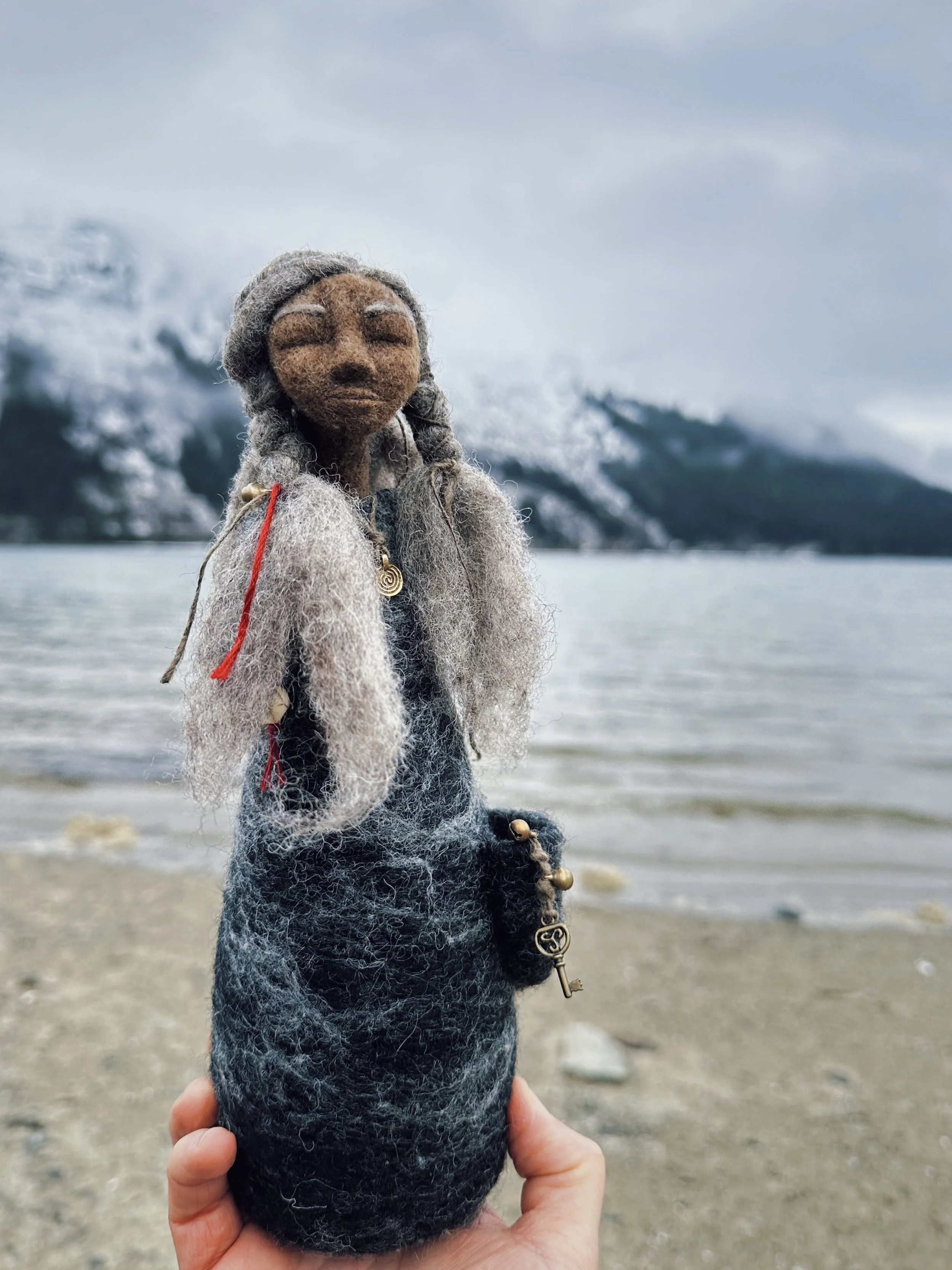 🌬️ Like all of my dolls, she was birthed in sacred space and needle felted by hand, over many hours, with love and intention. She is valued at $350.