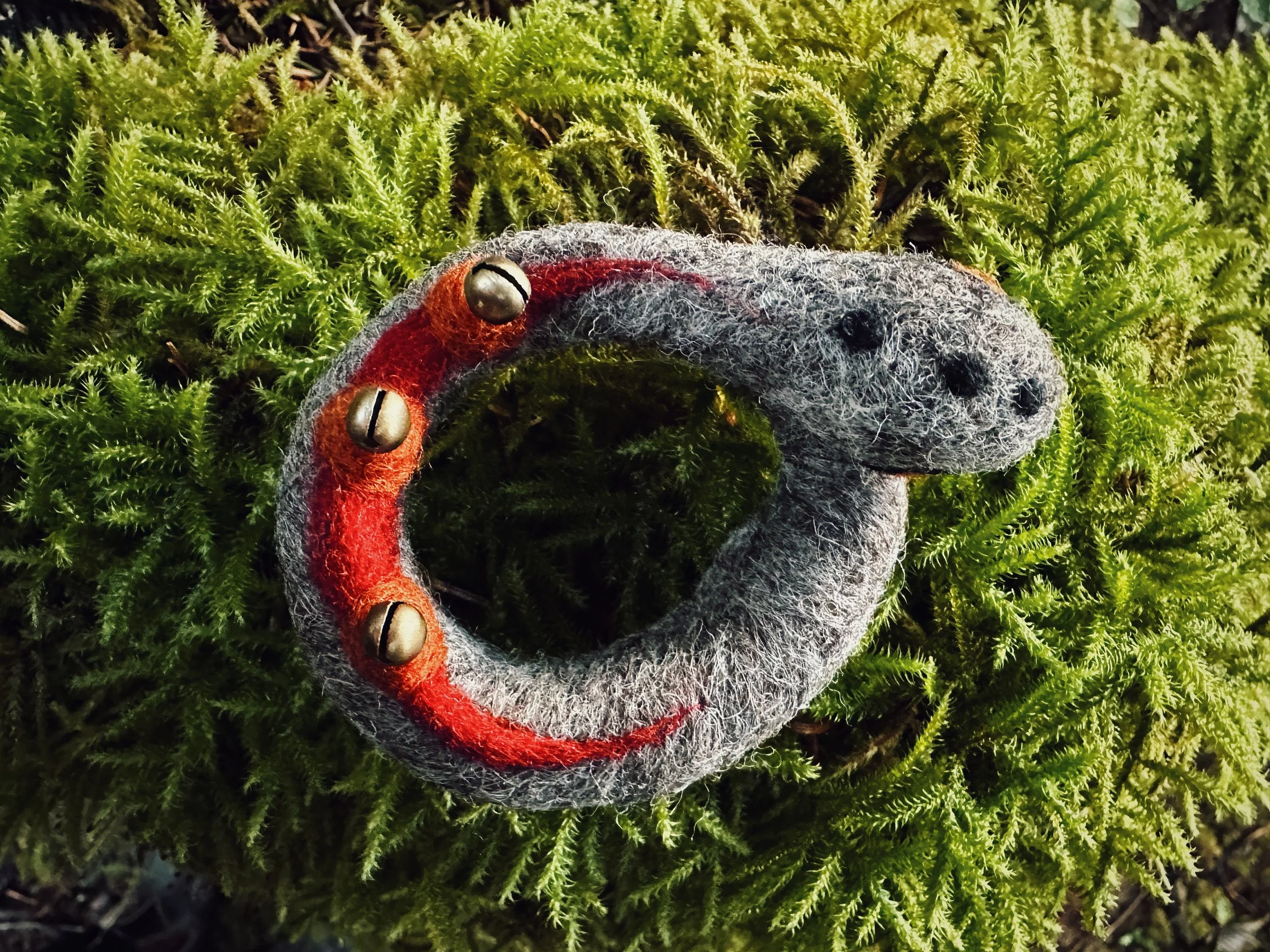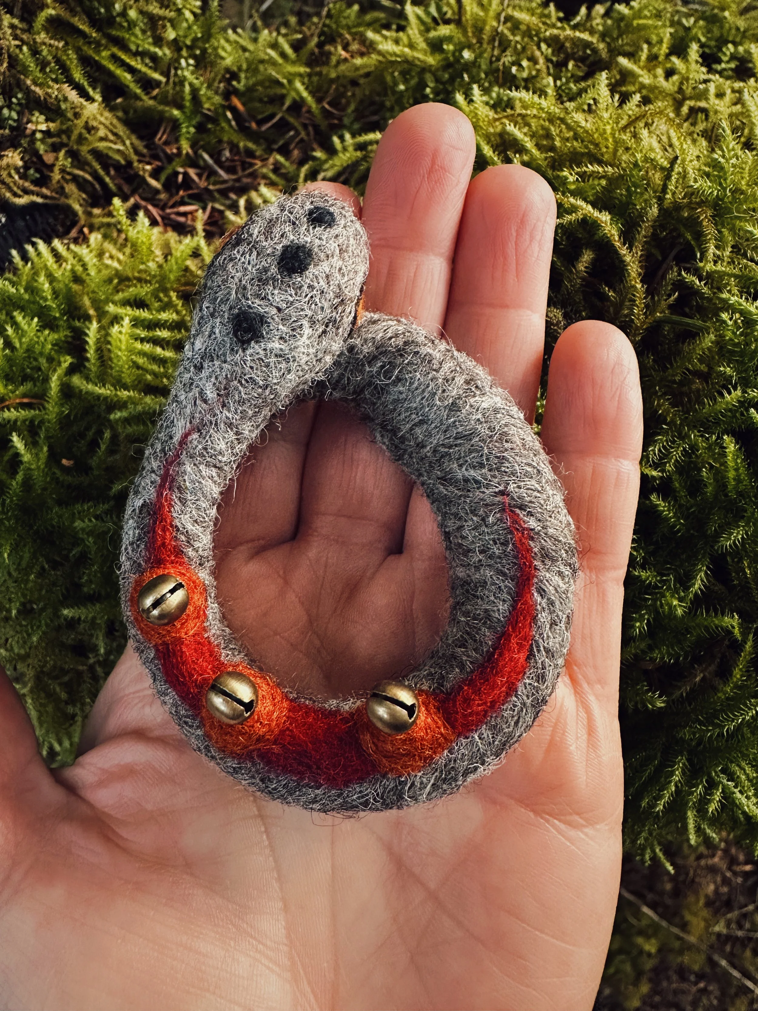 I recently began dreaming up new talisman ideas, and this sweet snake was the first to come forward. She carries mugwort - medicine for protection, dreaming, and connecting with Spirit & our guides. She’s adorned with bells, and jingles softly when shaken. I love the extra layer of magic this brings - I often use sound when I carve out sacred space and as a way to fortify protection magic.