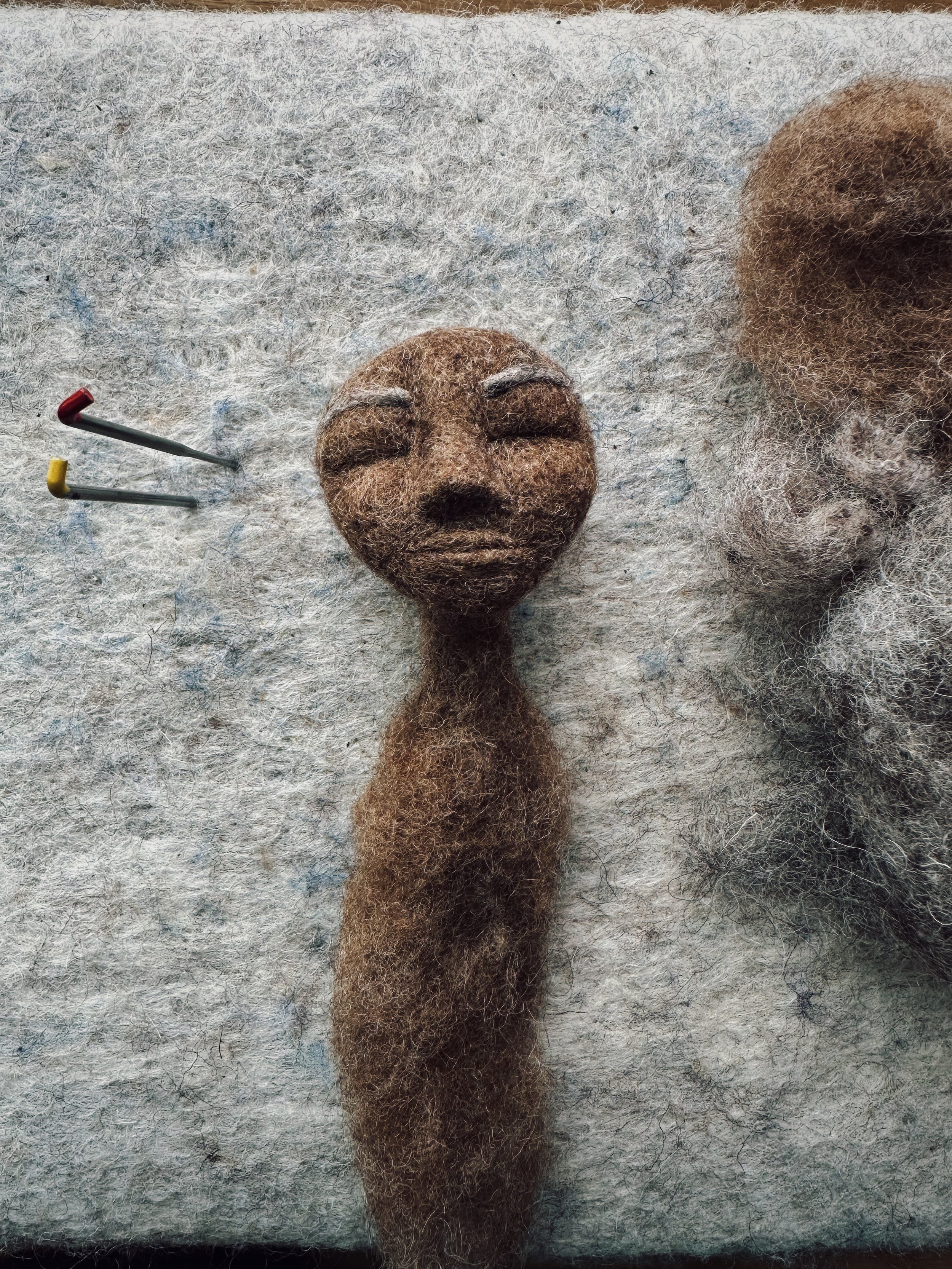 I begin each doll by creating the medicine bundle that will become the heart of the doll. My second step is to create the face - which is when the spirit of the doll truly begins to show itself. It’s a bit like waking up from a long slumber. The spirit of the doll greets me as I work with the wool, following my intuition to bring the face into full relief.