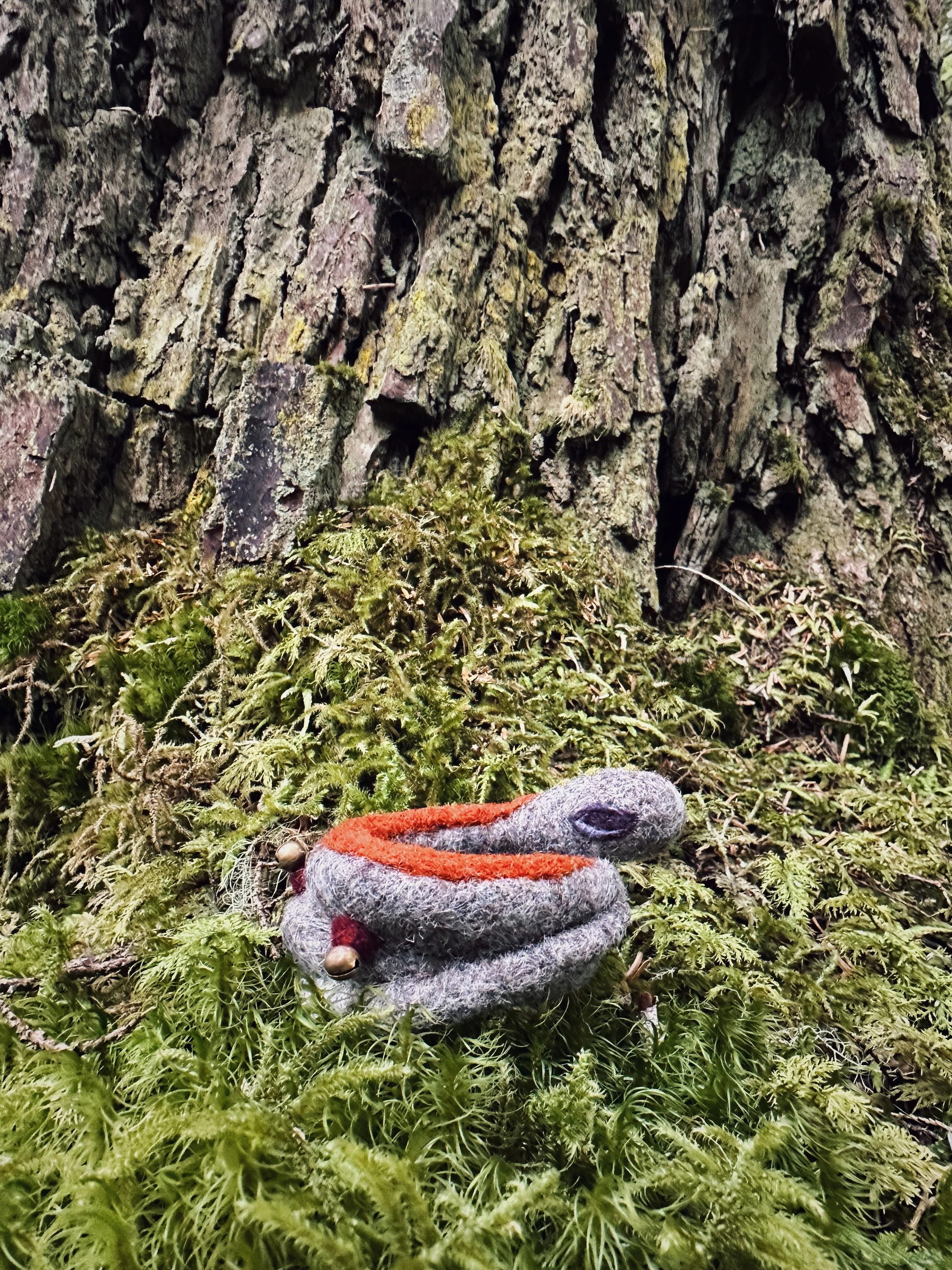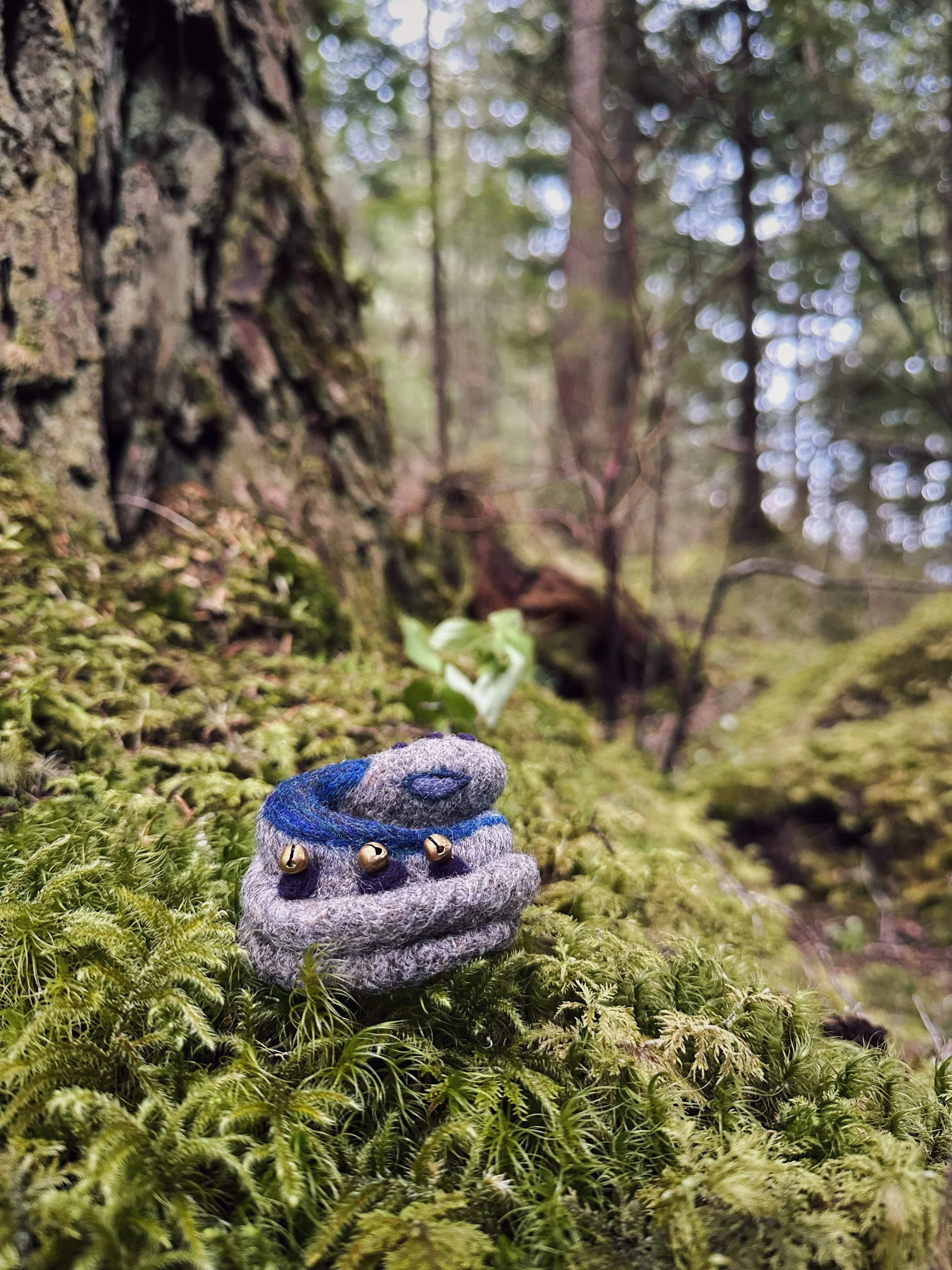 Each snake is adorned with 3 bells and holds organic mugwort and naturally shed snakeskin, medicine for boundaries, protection, dreaming, connecting to Spirit & your guides, transformation, and shedding that which no longer serves.